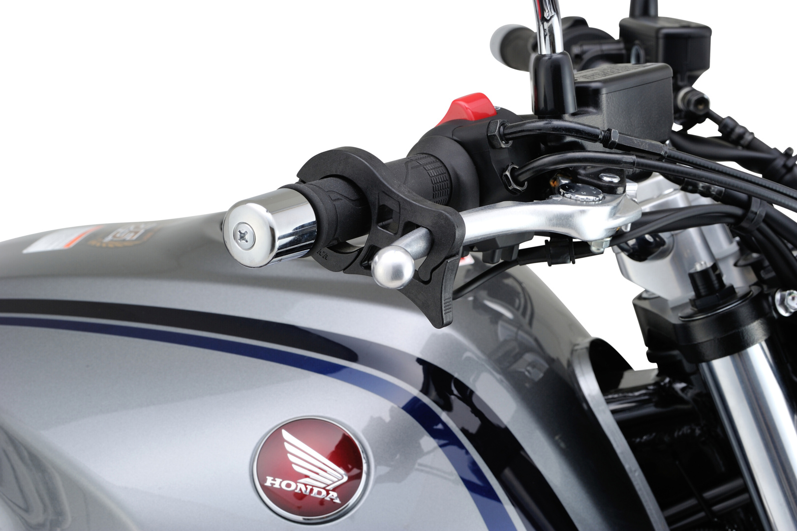 Zum Parken am Hang oder zur Wartung. Mit dieser Klemme wird der Bremshebel der Vorderrad Bremse fixiert.